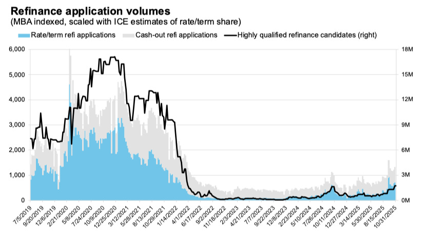 But with rates now above 6%, those days are long gone, and refinancing activity has collapsed. Intercontinental Exchange, owner of a mortgage technology platform, estimates that at current rates, there are 1.7 million borrowers out there with capacity to refinance. That’s up from a few years ago, but it’s way down on the 17 million borrowers whose mortgages became refinanceable when rates began their descent. Most borrowers are already on rates below 6%; many boast rates below 4%.