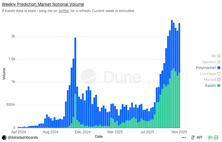 We’ve discussed prediction markets here before. In last August’s The Wisdom of Crowds, we traced the regulatory journey platforms have been on to gain acceptance, drawing parallels to Chicago’s commodity exchanges over 100 years ago. Just as policymakers eventually warmed to those venues they once branded as gambling dens, they have softened their stance on prediction markets. In the past year, Kalshi won a lawsuit allowing it to list political event contracts and Polymarket was cleared to relaunch in the US after gaining approval for its acquisition of QCEX, a licensed derivatives exchange and clearinghouse. In October, founders of Kalshi and Polymarket joined CEOs of CME Group, Intercontinental Exchange, Cboe Global Markets and Nasdaq on a panel in Washington.